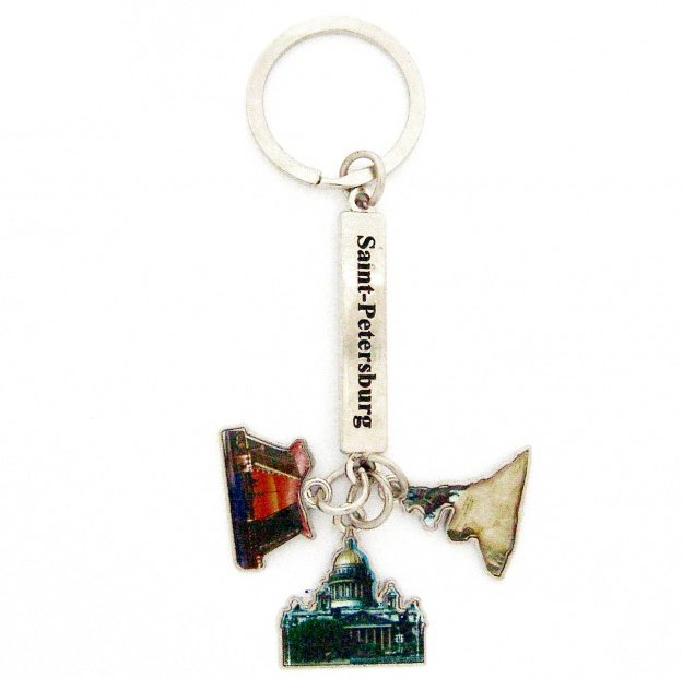 Брелок-подвес СПб- Исакий, Мост, Всадник (цвет-серебро, цв.) (уп. 12 шт.)