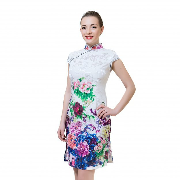 Платье Ципао белое с пионами S