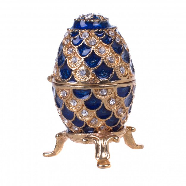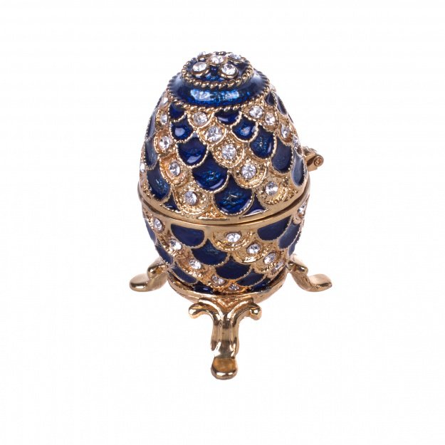 Шкатулка Яйцо 6 см. синее (металл, стразы)
