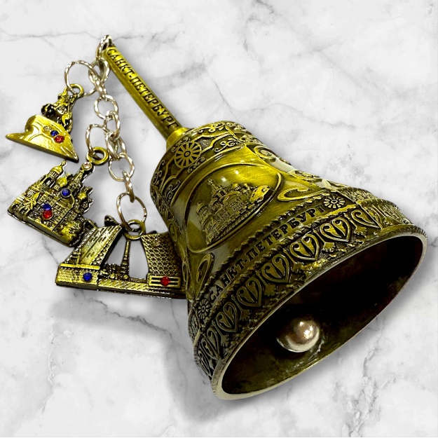 Колокольчик резной с подвесками 10 см. СПб (бронза) (кор. 100 шт.)