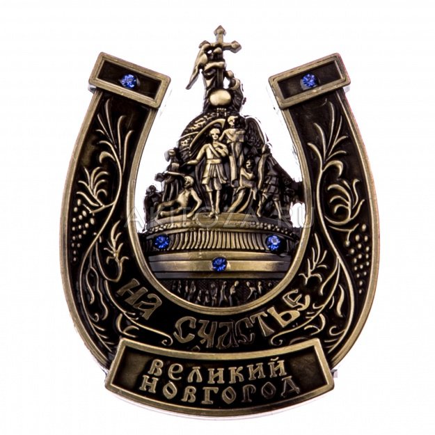Магнит-подкова со стразами В.Новгород (бронза)(металл) (уп. 12 шт.)