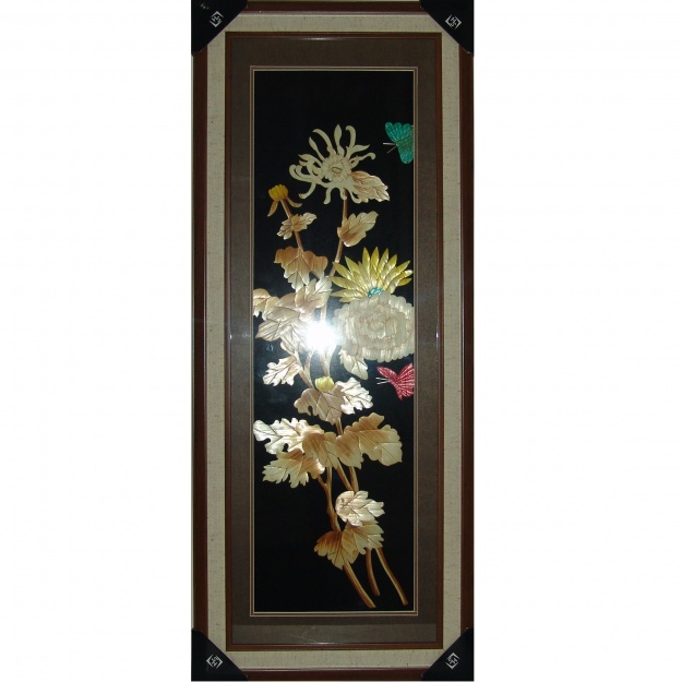 Картина с соломкой 35х85 см. Хризантемы, бабочки (цв.)