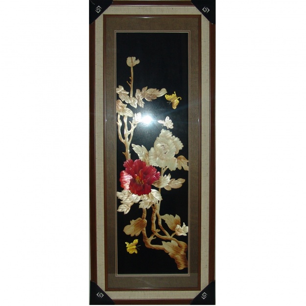 Картина с соломкой 35х85 см. Пионы, бабочки (цв.)