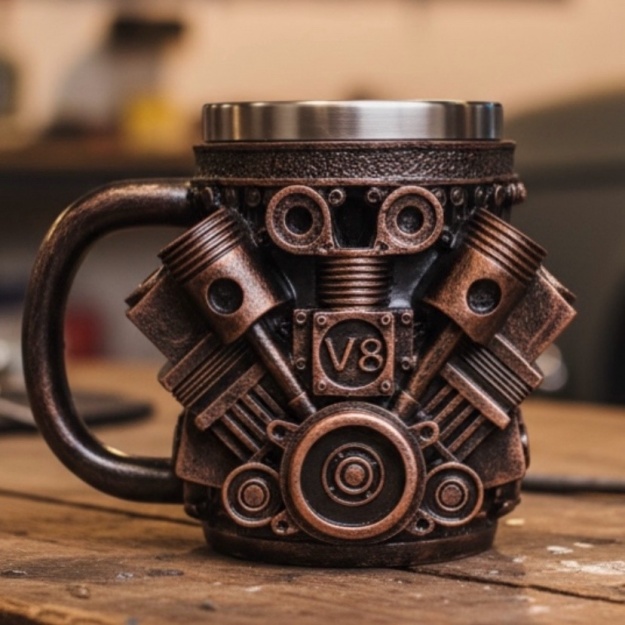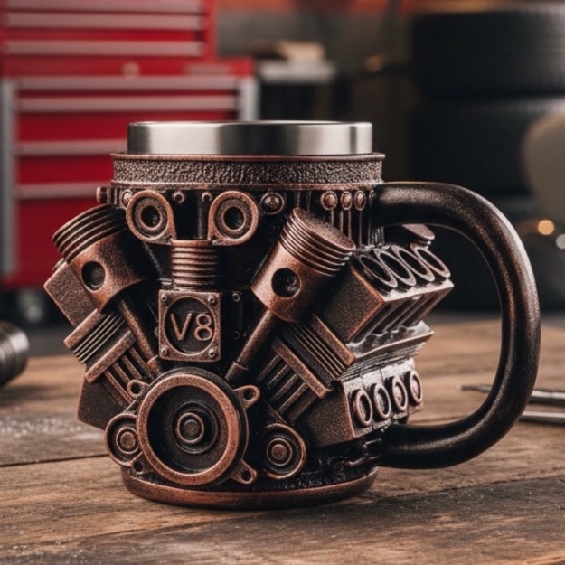 Большая пивная кружка двигатель V8 - отличный подарок всем фанатам или просто брутальному мужчине.