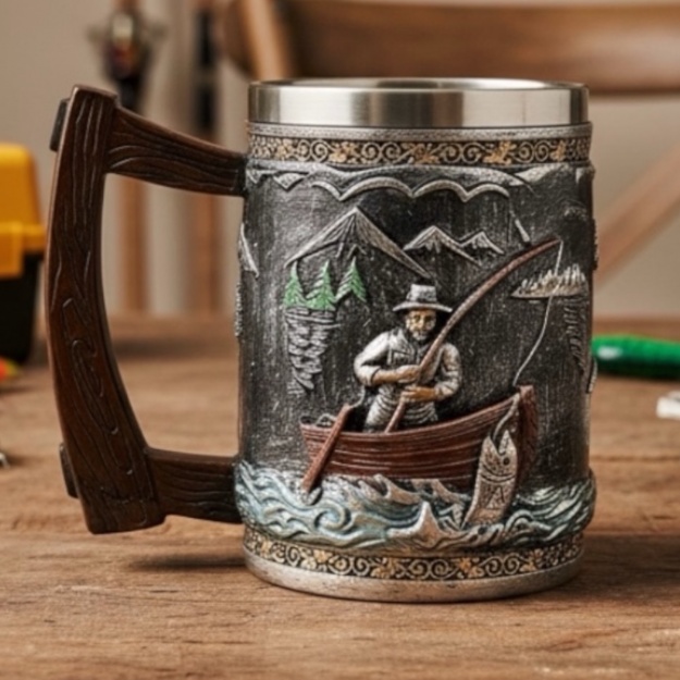 Пивная подарочная кружка Рыбак, объём 450 мл, в коробке 36 шт. Внутренняя часть кружки из нержавеющей стали, внешняя декоративная из полистоуна. Каждая кружка упакована в индивидуальную коробку из гофрокартона, с заполнением из пенопласта.
